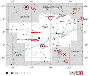 Āpa, always named along with Apavatsa, is an Indian star name in Early Modern times. The only indication of the position is Āpaṃvatsa () is 5° to the north of Chitra (Spica) and Apa is further 6° to the north, so Apa is 11° north of Spica. No information on magnitudes is preserved.[1] The coordinates agree fairly well with Zeta Virginis.