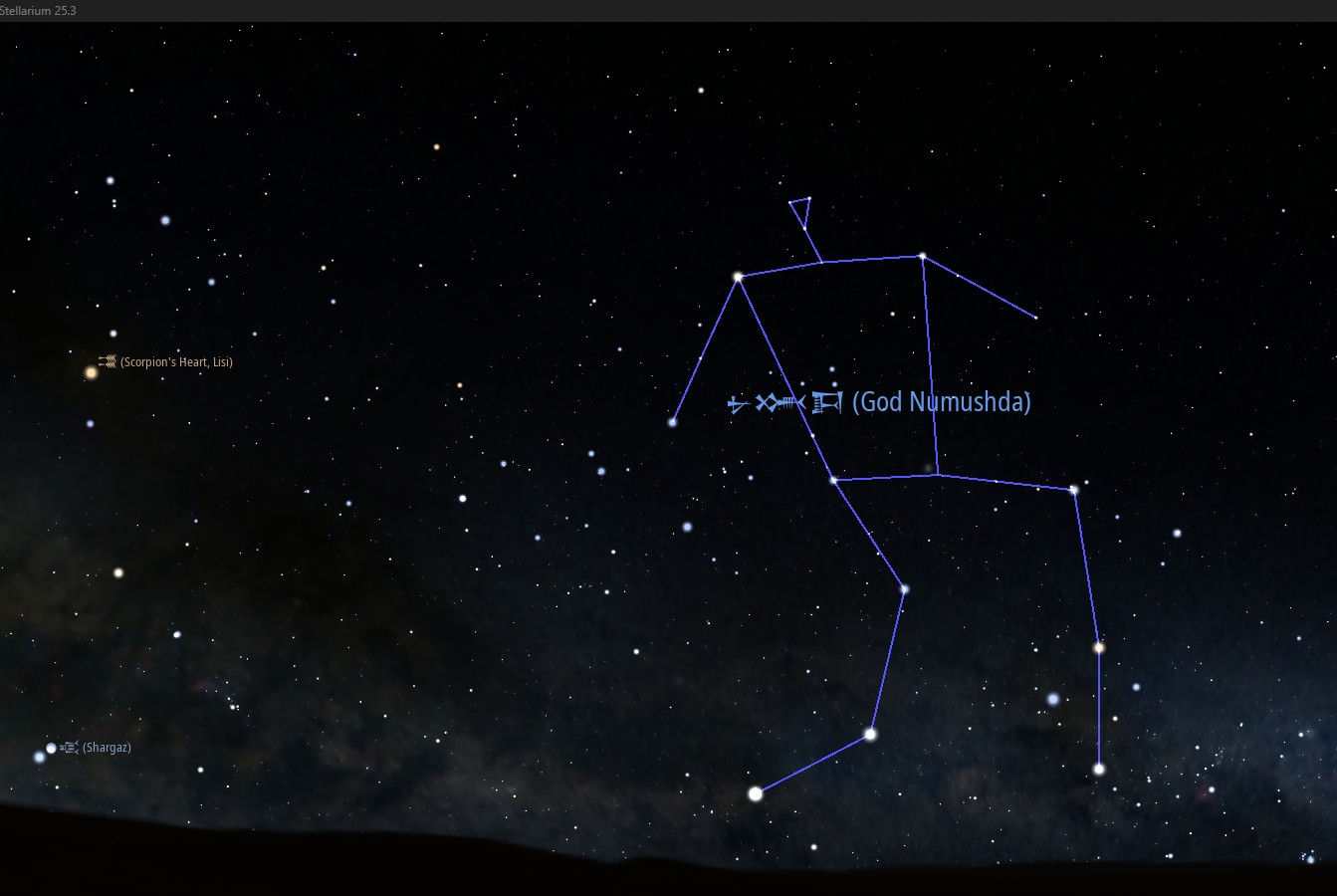 | current | 16:00, 29 December 2025 | 1,343 × 900 (117 KB) | Sushoff (talk | contribs) | NU.MUŠ.DA as a deity in the area of modern Centaurus which is in the southern Milky Way (Susanne M Hoffmann in Stellarium). |
