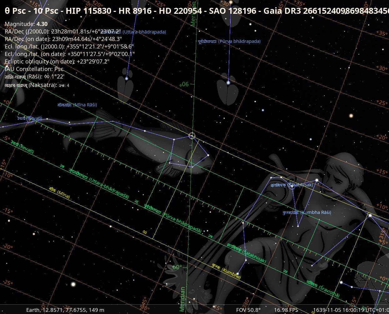 | current | 13:43, 4 November 2025 | 1,245 × 1,004 (205 KB) | Sushoff (talk | contribs) | Stellarium map of the region in question with tet Psc in the centre and naksatra and rasi displayed (SMH 2025). |