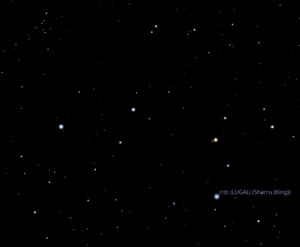= šarru "king"; = Regulus (α Leonis) [G. 240]. See also (Kurtik L15) LUGAL.E2.GAL.