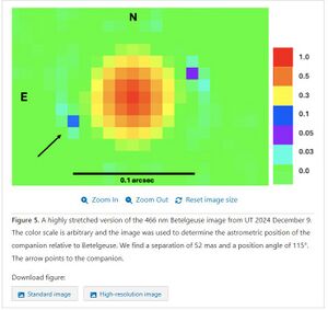 - ↑ Steve B. Howell, David R. Ciardi, Catherine A. Clark, Douglas A. Hope, Colin Littlefield, and Elise Furlan (2025). The Probable Direct-imaging Detection of the Stellar Companion to Betelgeuse, ApJL 988 L47