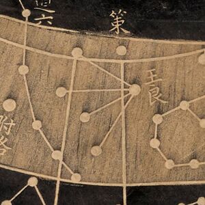 Additionally, a nearby star known as Ce (Whip, 策) was believed to represent the charioteer’s whip. This star was most likely added during the Western Han period.